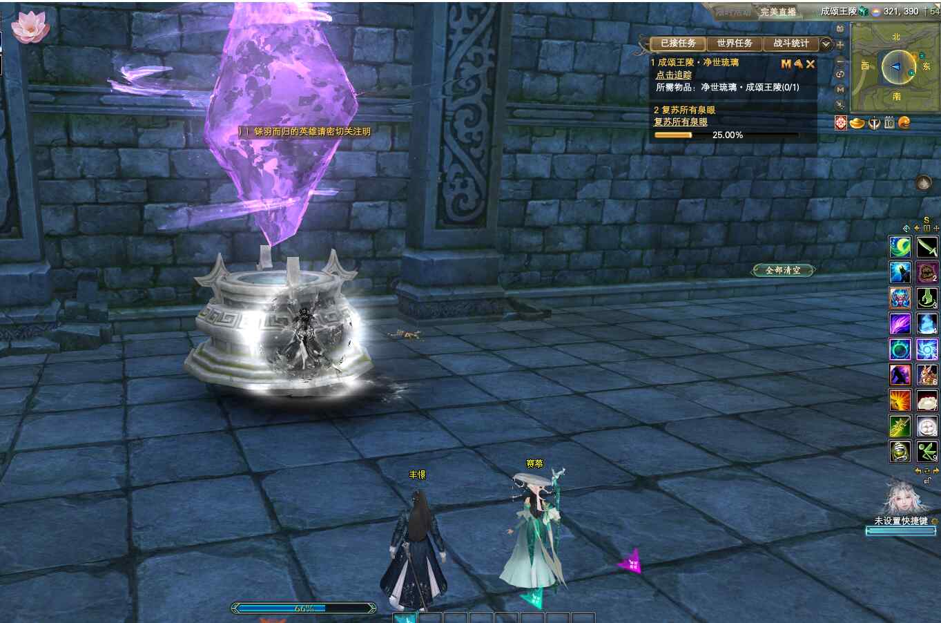 4个秘钥挖完以后,返回赛慕(348.390)交任务,方向感不强容易迷路的小可爱,可以不原路返回,直接回城后在进入王陵找赛慕。对话完成后,开启赛慕身后的机关(348.390)接到任务净世琉璃,再次跳下通道去二层,到(321.390.)挖取底座,对话出现的游魂,接到逃离任务。