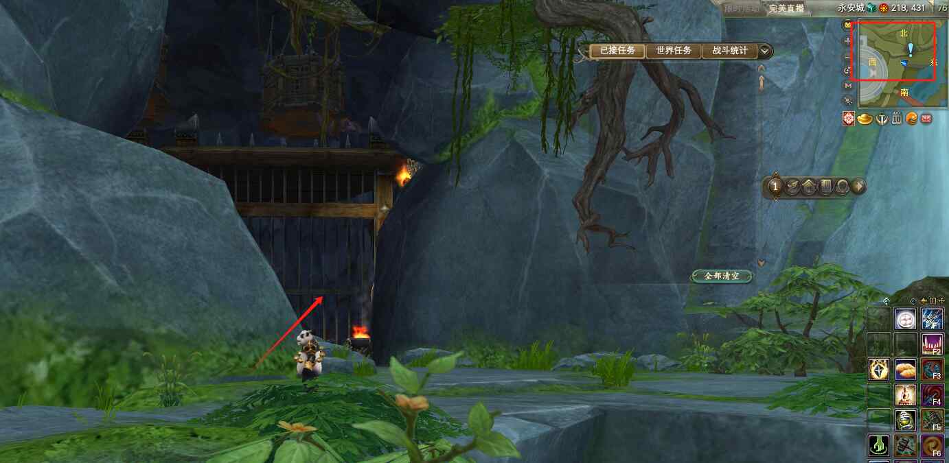 再去青帝青珏(174.458)接取任务,根据追踪黄圈,到天行宫旁边的山洞里(220.435)自动完成任务。