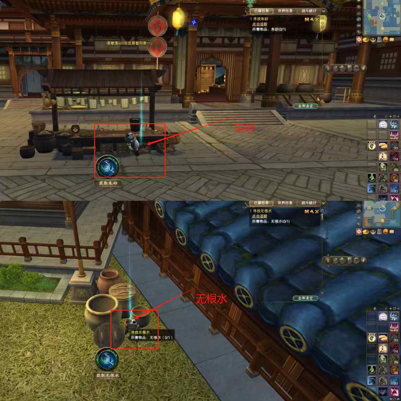 到达东路以后,从帝宫往南,到布坊老板 邓宝津(165.350)接任务哦!两次对话后,到旁边杂货小贩 陈百强(158.348)继续询问,得知布坊闹鬼后,继续询问周边众人,前往花灯商人 蔡大婶(159.350)处对话完成任务,再去找风水先生(184.334)对话,接到任务制作符咒,需要材料无根水(182.312.高度54)(在靠近青霜港的房屋屋檐下,都有追踪黄圈的哦)、朱砂(158.360.高度55)。