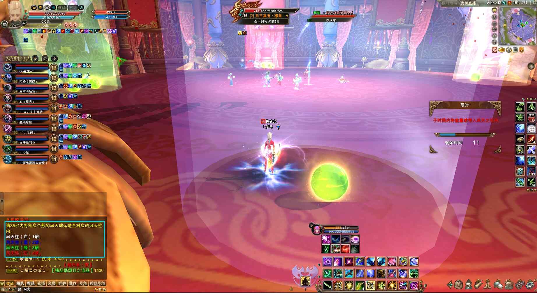 ⑷若一次运球出现失误,副本进度凤王真身.穆皇不变,有玩家跑出天柜之巅的亭子再回来继续战斗,将出现凤天柱绿球不消失所谓“卡球”,注意这个绿球也参与计数;