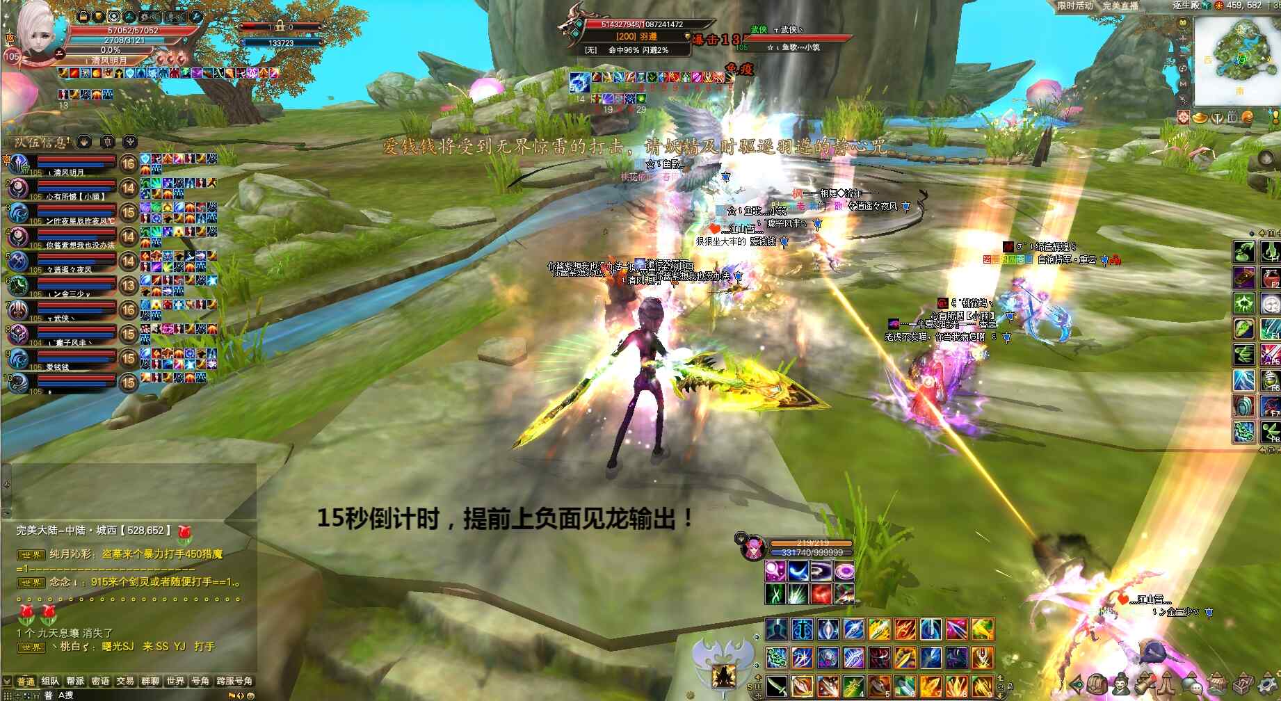 ②15秒盾倒计时月仙创世秒怪玩法,通常武侠金刚开怪后BOSS倒计时15秒羽盾,等羽盾10秒时月仙创世剑灵剑印、等羽盾5秒时打手一起爆元(6秒羽芒拉鹰再爆元)、等羽盾3-4秒时剑灵破釜武侠丢龙妖精残体及其他负面都上(如羽灵增加暴击、精灵的泥泞灭魄等)、打手爆元结束一起集火BOSS输出,队伍伤害输出够直接秒羽遵。