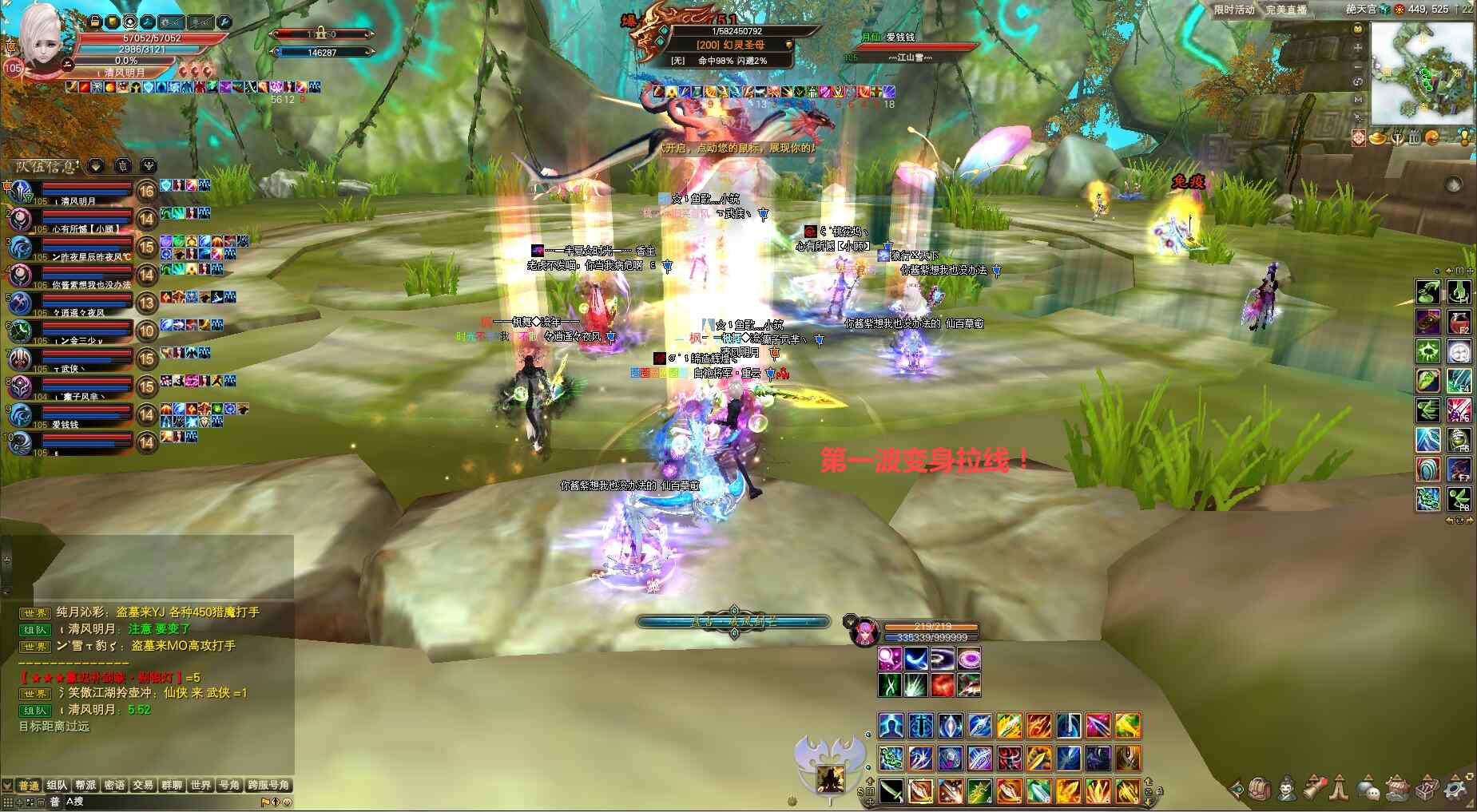 ④正常第一波幻灵圣母变身打下去后BOSS将推人,有两种情况: