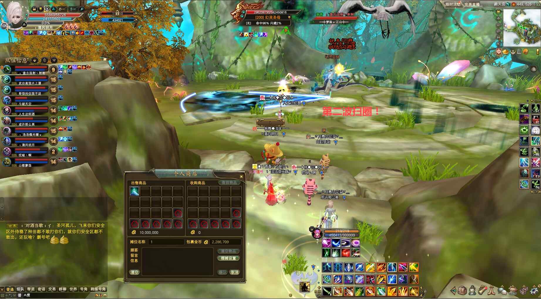 ①队伍集合后,有输出的几个打手开怪慢慢磨血和打空中的虫子及抗怪打手利用BOSS扇形扫圈9个(Q键任务栏可查看已成功扫圈数量),辅助职业可摸怪后摆摊,羽灵/魅灵需给抗怪打手加血,且羽灵注意救人/魅灵注意补复活。