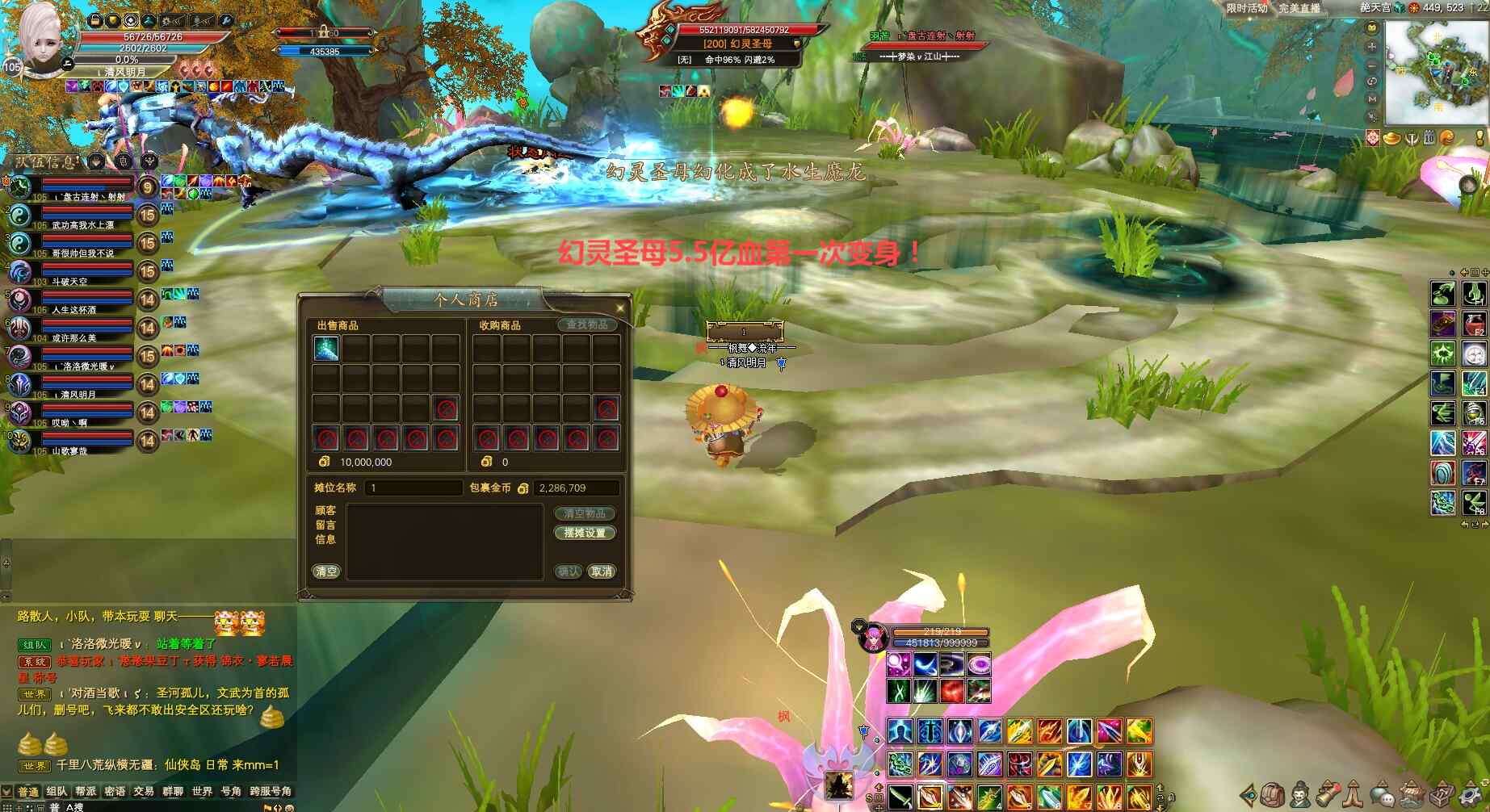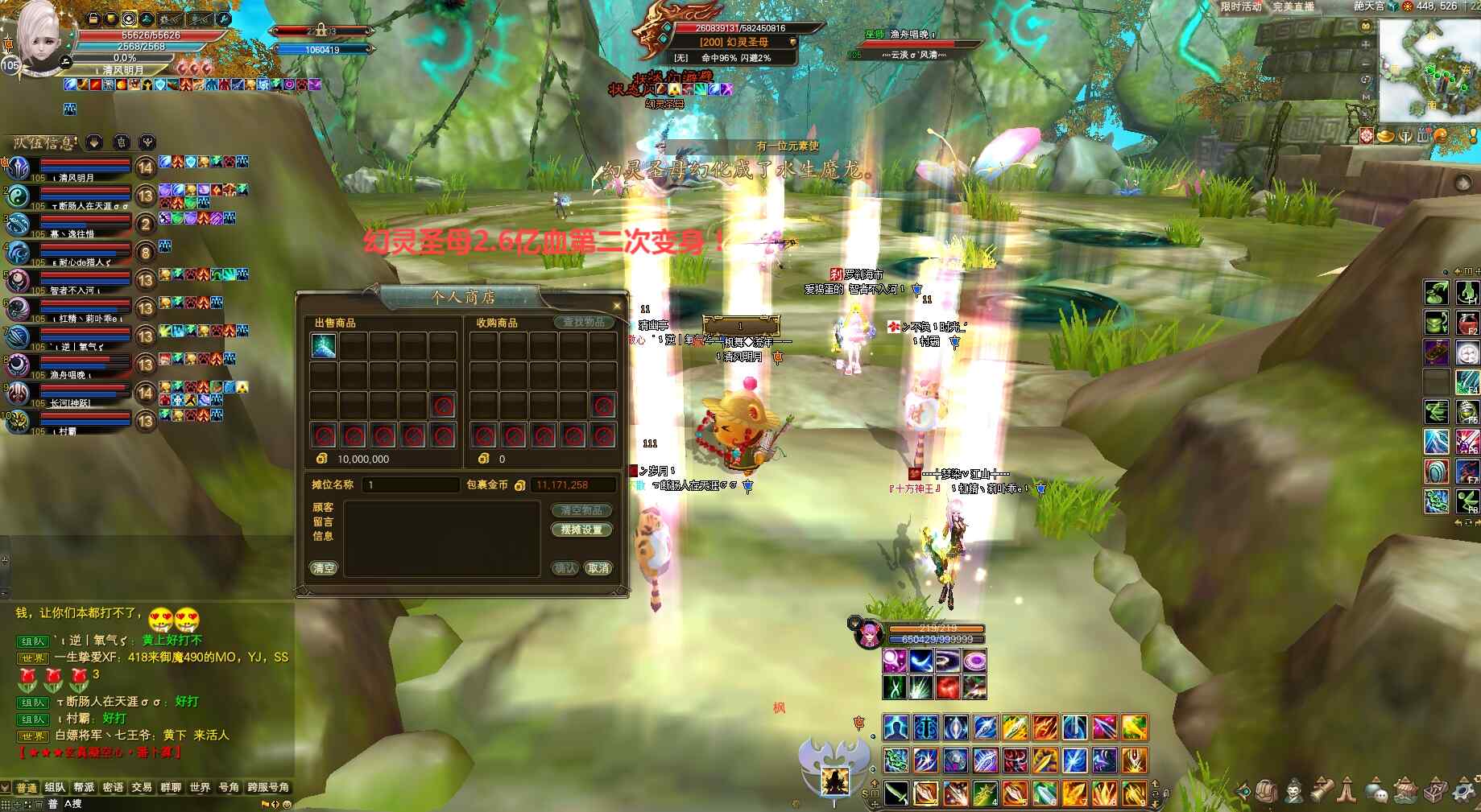 幻灵圣母,挑战关键机制就是磨血时扇形保命扫圈和随机传人跑毒/门口摸怪后摆摊、及上负面开打时当心水银龙尾巴致命伤害,其中摸怪后摆摊可免疫被传。