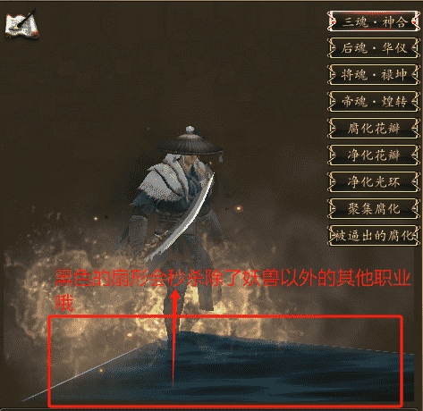 如果队伍输出偏低,那么后期地面上还会出现红色的血渊光圈,可以安排妖兽和武侠开60秒免死去踩灭光圈。(正常输出队伍,基本不会拖到出血渊。)