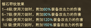 义位技能,神劈星斩月;银石符文,刀剑技能拥有较高的伤害,和较高的元气恢复,爆发技能使用之后或元气未满时使用较好。