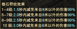 立位技能 神左旋之翼:银石符文 减免8米之外敌人99%的伤害 有效释放可规避大部分伤害。
